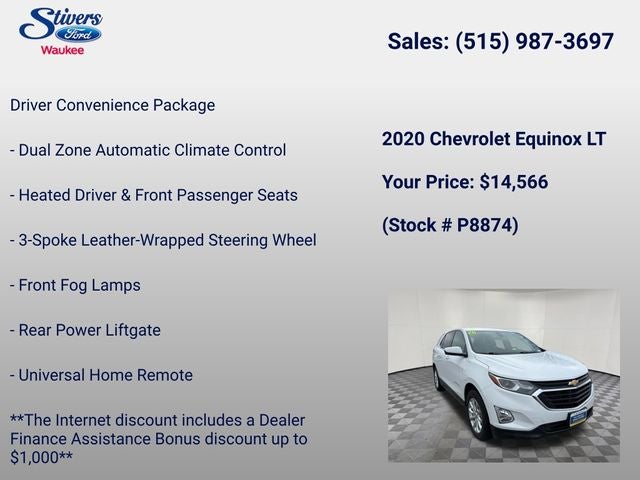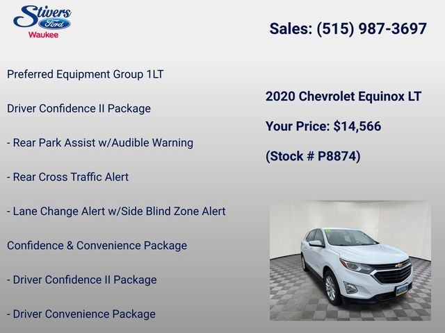 This 2020 Chevrolet Equinox LT represents an exceptional value in the pre-owned SUV market. With its impressive features, efficient performance, and certified quality, it's the perfect choice for the discerning buyer who demands the best. Schedule a test drive today and experience the difference for yourself.