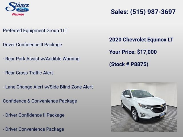 Experience the exceptional value and peace of mind that this 2020 Chevrolet Equinox LT has to offer. Schedule a test drive today and discover how this versatile and well-equipped SUV can enhance your driving experience.
