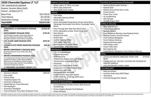 This 2020 Chevrolet Equinox LT is a sophisticated and capable SUV that delivers an exceptional driving experience. With its 1.5L DOHC engine and 6-speed automatic transmission with AWD, it provides a seamless blend of power and efficiency, earning an impressive 25 city/30 highway MPG.