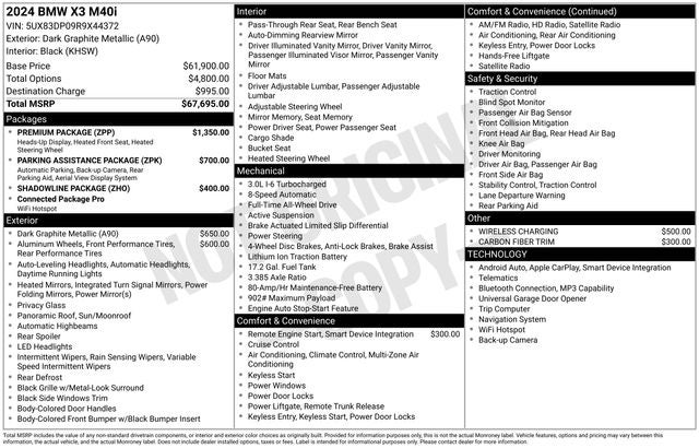 Whether you're seeking a dynamic driving experience, exceptional utility, or the latest in automotive technology, this 2024 BMW X3 M40i is the perfect choice. Visit our showroom today to experience the power and refinement of this remarkable vehicle for yourself. We're confident that once you take it for a test drive, you'll be convinced that this is the perfect addition to your garage.